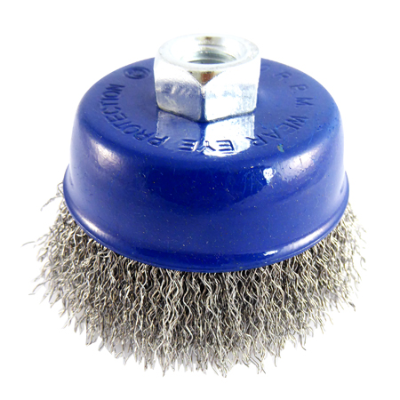 Hard-wearing cup brush Suitable for cleaning large surface areas quickly and efficiently Manufactured from high grade steel The brush fill is made from 0.30mm diameter high-tensile steel wire, designed to hold its shape and to provide easy-to-control surface cleaning For use on 180mm and 230mm angle grinders